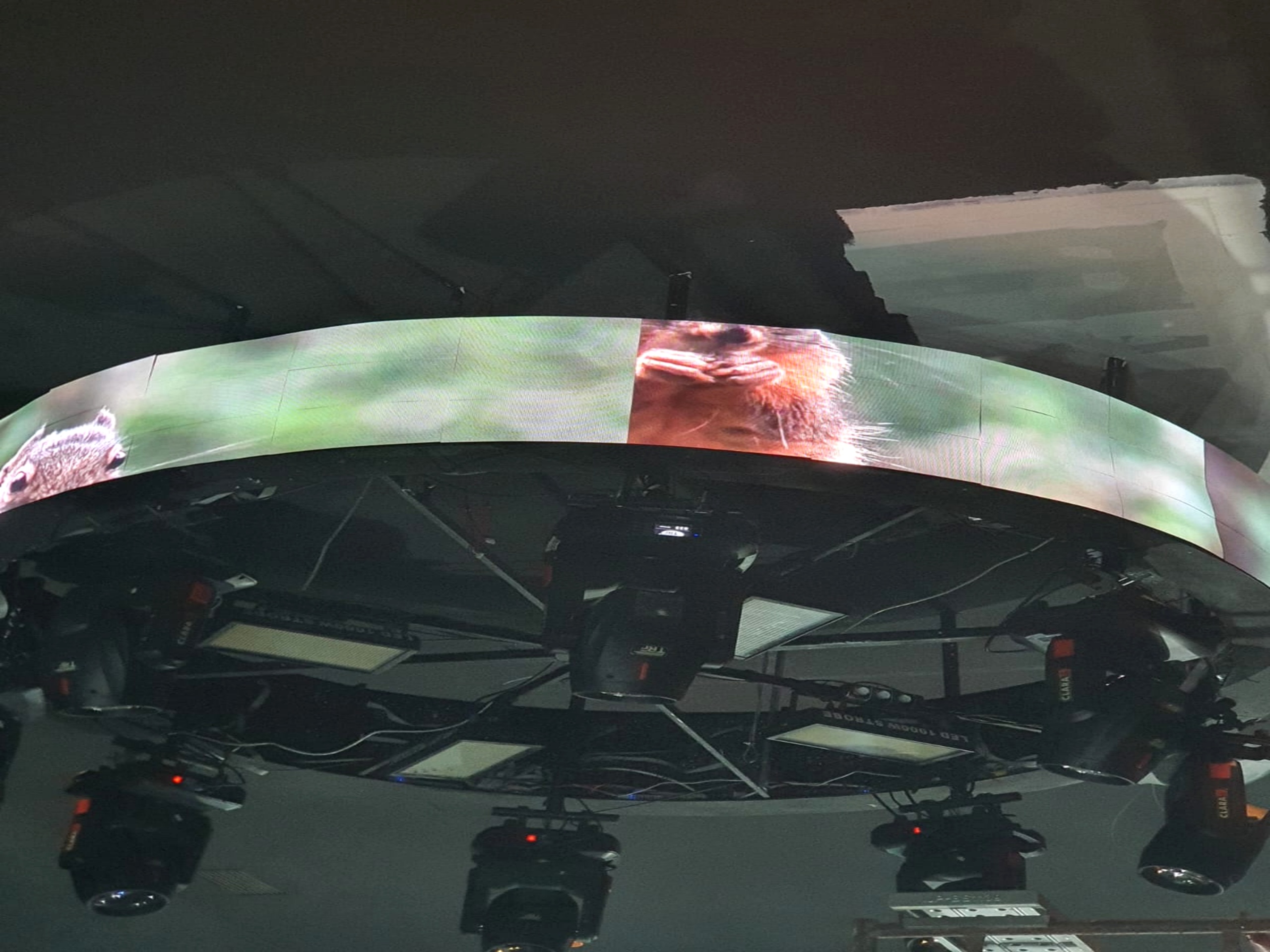 Dalam proses instalasi, tim teknisi melakukan pemasangan modul LED flexible yang mampu mengikuti bentuk lengkungan struktur. Teknologi ini memungkinkan layar tampil lebih dinamis dan estetis tanpa mengurangi kualitas gambar. Sementara itu, layar P1.5 fixed digunakan untuk kebutuhan tampilan utama dengan resolusi tinggi dan detail yang sangat tajam.