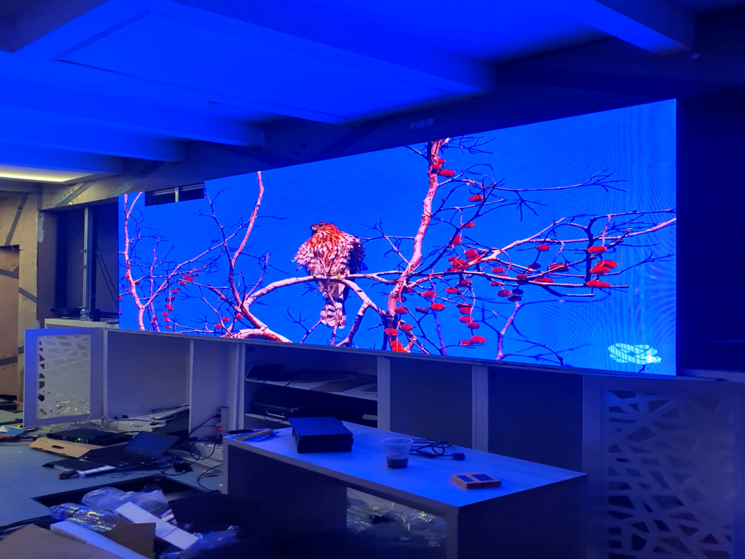 Dengan selesainya pemasangan ini, Vill House Bandar Lampung kini memiliki elemen visual digital yang tidak hanya fungsional, tetapi juga menjadi pusat perhatian dalam ruangan.
