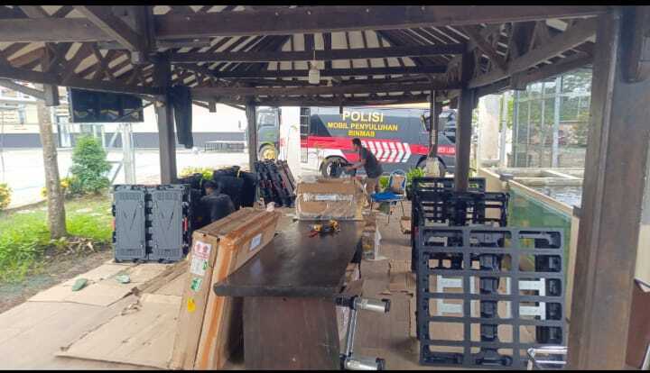 Proses pemasangan Videotron P4 Outdoor di Polres Lampung Selatan